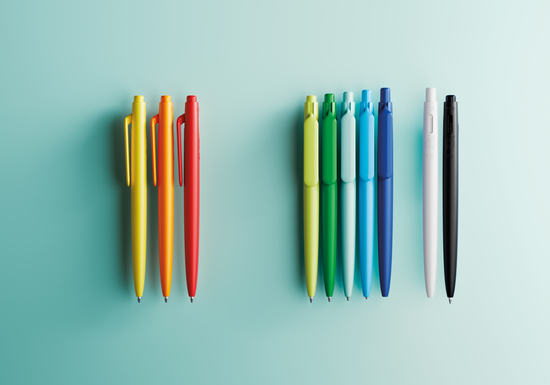 Schreibgeräte sind komplexe technologische Objekte, die sich seit der Zeit von Federkiel und Tintenfass immer weiterentwickelt haben. Aber manchmal tendiert die Evolution auch zur Einfachheit – wie beim neuen DS11. Der DS11 ist ein Druckkugelschreiber, der aus nur zwei Teilen besteht. Der Mechanismus kommt ohne separate Feder oder Komponenten aus und ist ganz organisch Teil des Gehäuses: ein intelligentes, geschlossenes System. Mit nur zwei Teilen steht der DS11 für elegante Einfachheit ohne jeden Schnickschnack, der gut schreibt, unbegrenzt nachfüllbar ist und sich perfekt für klare Markenbotschaften eignet, die es auf den Punkt bringen wollen. Den DS11 mit poliertem Clip gibt es in zehn matten Farben, hergestellt mit einem Rezyklatanteil von 100% (Schwarz und Weiß) oder 50% (alle anderen Farben). Sondergehäusefarben ab 10.000 Stück. Zwei Druckflächen für Werbeanbringungen stehen zur Verfügung. Ausgestattet mit der umweltfreundlichen auswechselbaren FLOATING BALL® lead free-Großraummine 1.0, Schreiblänge 5.000 m, Schreibfarbe Blau oder Schwarz.