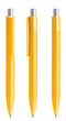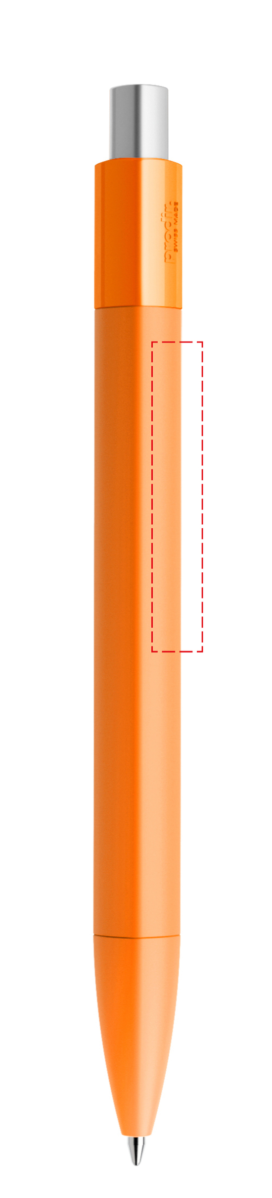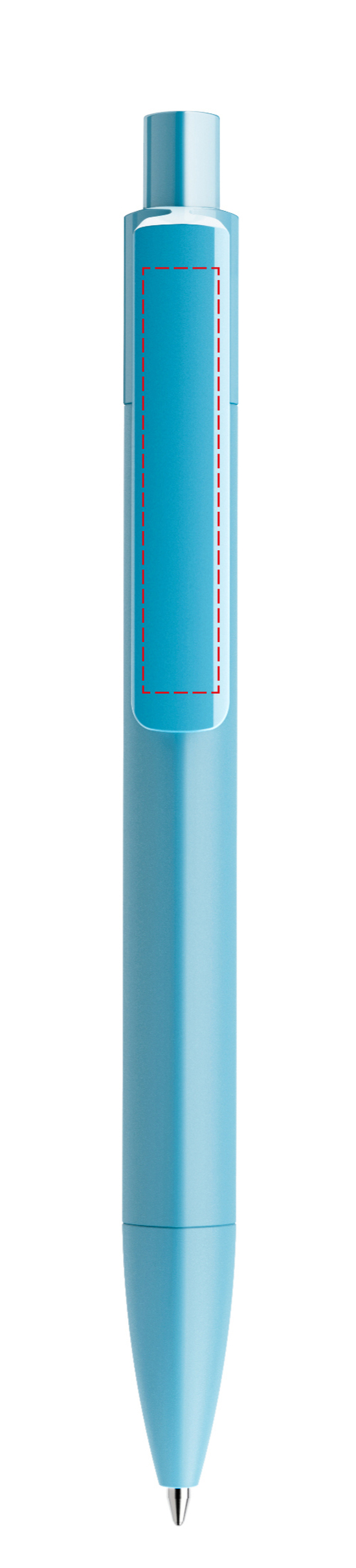 Er ist quadratisch vom Knopf bis zur Spitze - und zieht sofort alle Aufmerksamkeit auf sich. Gewicht und Form sind für maximalen Schreibkomfort ausgelegt. Der Oberflächenmix aus mattem Gehäuse und polierter Clip-Druckknopf Kombination unterstreicht seine Wertigkeit. Dank seiner leichten 45° Drehung sitzt der Clip wie ein Scheitel auf dem Gehäuse. Er bleibt stets im Blickfeld des Schreibenden. Liegt der DS4 auf dem Schreibtisch, wirkt er fast wie ein Namensschild. Starke Farben wie Mint Cream und Dusty Blue setzen visuelle Akzente in Matt und Soft Touch. In der Ausführung mit vollfarben mattem Gehäuse (PMM) lieferbar in zehn Standardfarben, hergestellt mit einem Rezyklatanteil von 100% (Schwarz und Weiß) oder 50% (alle anderen Farben), gekennzeichnet mit dem internationalen Recycling-Symbol. Sondergehäusefarben ab 5.000 Stück. Drei Druckflächen für Werbeanbringungen stehen zur Verfügung. Clip und Druckknopf sind in polierter Oberfläche. Druckknopf in galvanisiertem Silber poliert oder satiniert als Option. Ausgestattet mit der umweltfreundlichen auswechselbaren FLOATING BALL® lead free-Großraummine 1.0, Schreiblänge 5.000 m, Schreibfarbe Blau oder Schwarz.