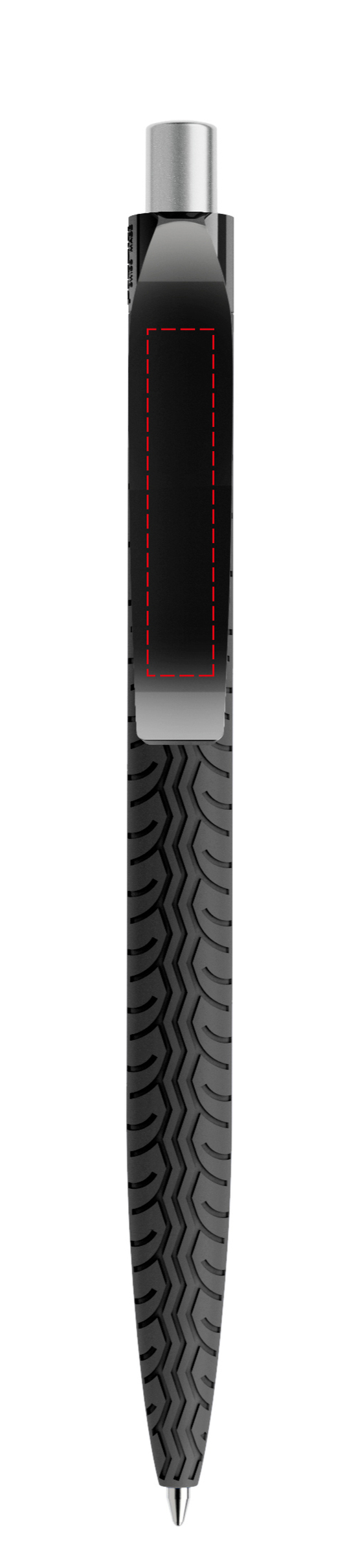 Haptik ist die neue Optik. Der QS03 zeigt eindrücklich, wie sich die 3D-Oberflächen der QS-Kollektion mit den typischen Merkmalen eines Produkts personalisieren lassen. Er sieht aus wie ein Reifen und fühlt sich an wie ein Reifen: optische und haptische Wahrnehmung formen eine klare Identität, optionales Soft Touch macht die Botschaft noch unmittelbarer sinnlich erfahrbar. Der QS03 ist ein Special-Interest-Modell für Unternehmen, die sich mit Autos und Reifen beschäftigen und das griffig kommunizieren wollen. Den QS03 mit seiner TIRE-Oberflächenstruktur gibt es in matter oder Soft Touch-Oberfläche, jeweils mit schwarz poliertem Clip/Druckknopf, hergestellt mit einem Rezyklatanteil von 100%, gekennzeichnet mit dem internationalen Recycling-Symbol. Sondergehäusefarben ab 5.000 Stück. Alternativ auch mit farbigem Clip/Druckknopf erhältlich, hergestellt mit einem Rezyklatanteil von 50%. Polierter oder satinierter Metalldruckknopf als Option. Ausgestattet mit der umweltfreundlichen auswechselbaren FLOATING BALL® lead free-Großraummine 1.0, Schreiblänge 5.000 m, Schreibfarbe Blau oder Schwarz.