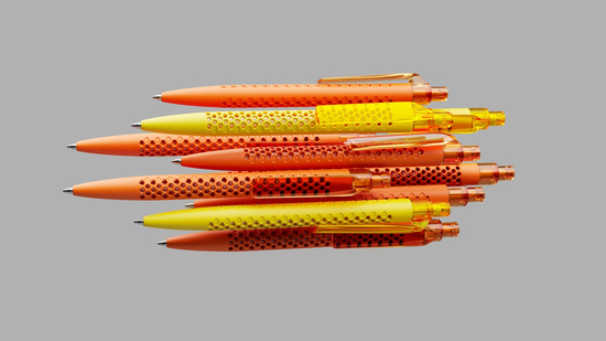60% weniger Kunststoff. 100% mehr Luft. Der QS40 bringt die Dreidimensionalität seiner Oberfläche in eine neue, ebenso ästhetische wie nachhaltige Form. Die rhythmisch perforierte Wabenstruktur gibt den Blick frei auf die innenliegende Mine. Löcher bestehen zwar aus nichts als Luft, was aber seinen Reiz haben kann, wie der QS40 Air beweist. Den QS40 mit seiner perforierten Struktur gibt es in zehn matten Farben, drei mit poliertem Clip/Druckknopf sowie sieben mit transparentem Clip/Druckknopf, hergestellt mit einem Rezyklatanteil von 100% (Schwarz und Weiß) oder 50% (alle anderen Farben), gekennzeichnet mit dem internationalen Recycling-Symbol. Sondergehäusefarben ab 5.000 Stück. Polierter oder satinierter Metalldruckknopf als Option. Ausgestattet mit der umweltfreundlichen auswechselbaren FLOATING BALL® lead free-Großraummine 1.0, Schreiblänge 5.000 m, Schreibfarbe Blau oder Schwarz.